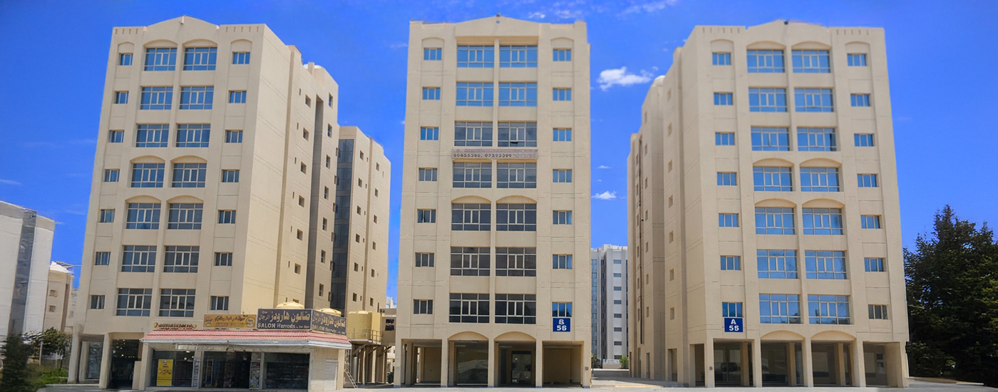 ABC Buildings are located in Mahboula area . Each building consists of 7 floors, Each floor has 4 apartments, with an apartment area of 70.6 square meters. Security service and surveillance cameras are available in a closed lobby to ensure the highest level of security for residents. Distinctive spaces and parking spaces are available with a distinctive 24-hour maintenance service, in addition to 3 commercial shops.